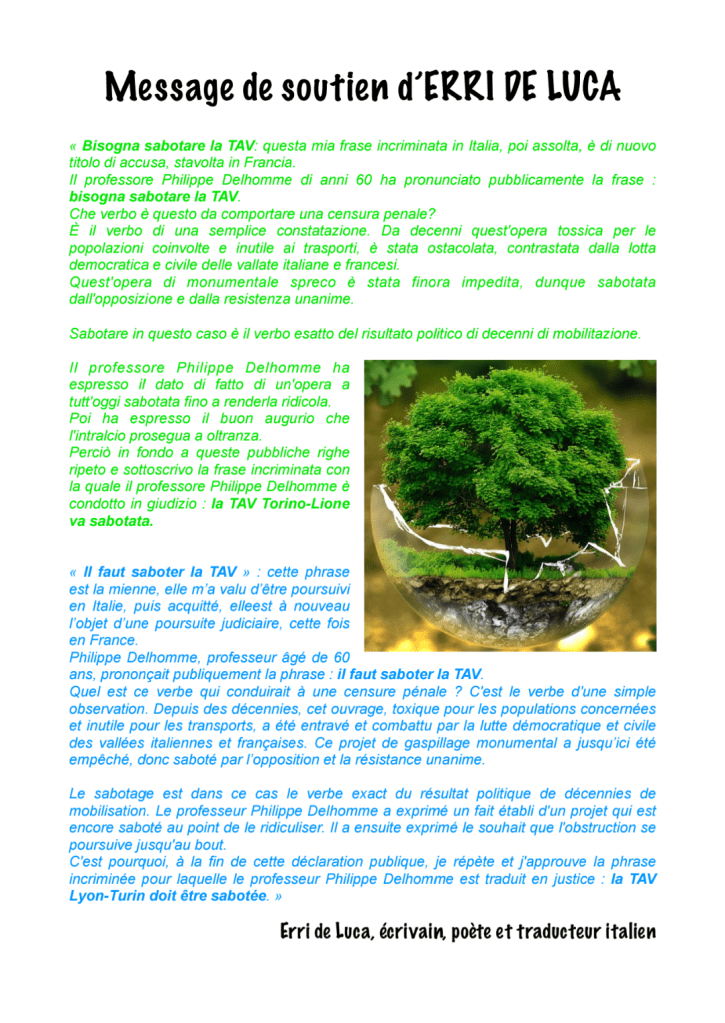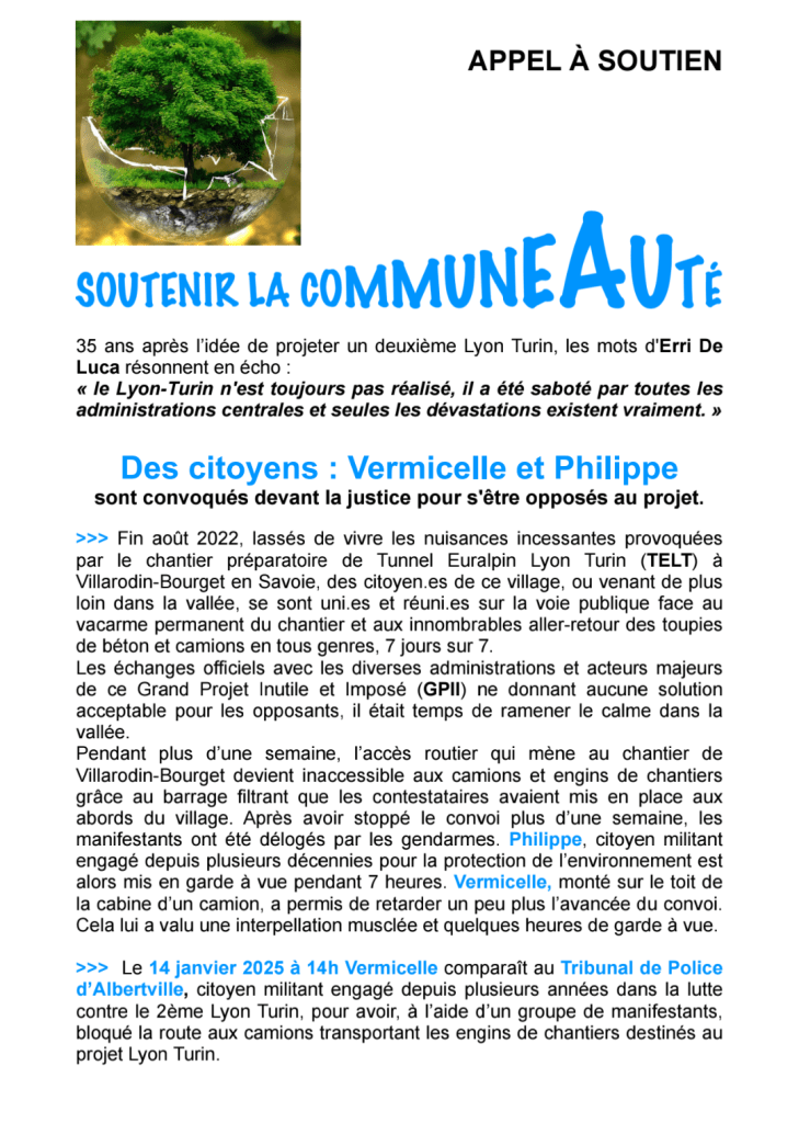 Appel à soutien face à la répression des opposants au Lyon-Turin